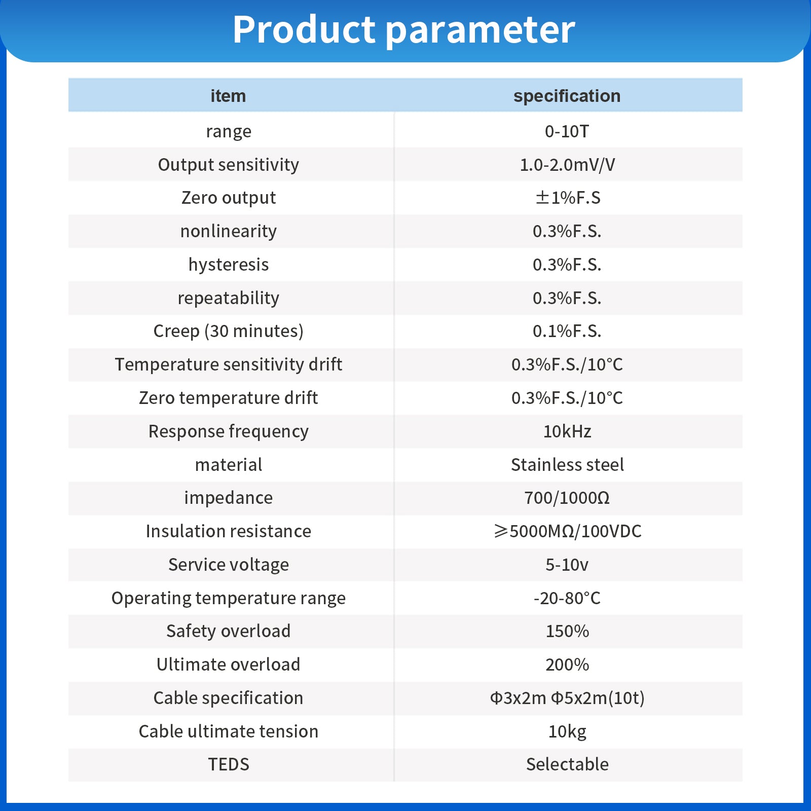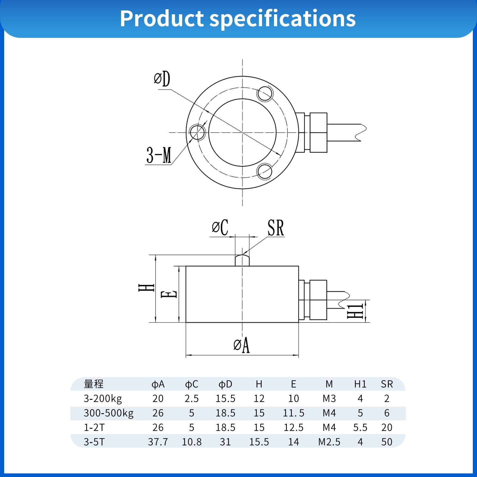 The miniature load sensor adopts flat diaphragm integrated structure and small size, which is suitable for mobile phone key touch test, industrial assembly and other space-limited scenes. The elastomer is made of aero-grade stainless steel with high-precision strain gauges to ensure measurement accuracy and long-term stability. The hex nut waterproof joint is resistant to tension and dust, suitable for extreme environments from -20°C to 70°C. The measuring range covers 5kg~700KG, compatible with 5V~12V incentive voltage, to meet the needs of industrial automation, medical equipment and other high-precision force value detection, and to enable precision manufacturing with reliable quality.